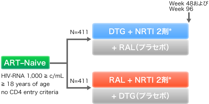 ウイルス抑制効果についてDTG群はRAL群に対して非劣性であった。